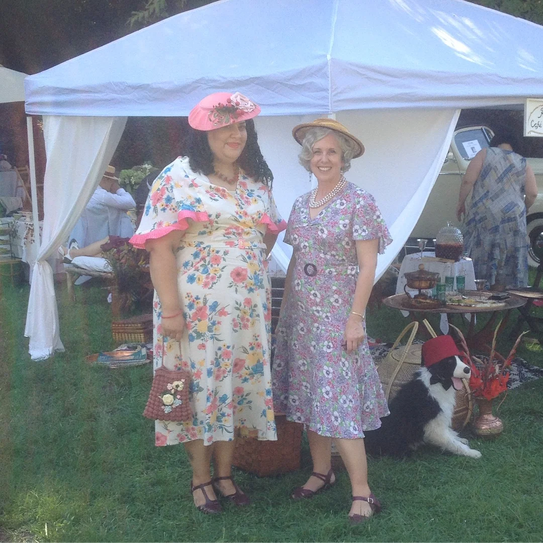We bring a picnic table set up and then walk around enjoying all the vintage fun. My mom made her hat, Cousin Kathy made her dress and Maurice already had a wardrobe (from a previous work life) that fit perfectly into the era. Men have it pretty easy, in that regard. Jone bought a new vintage style dress and a 60's does 20's hat that totally worked.