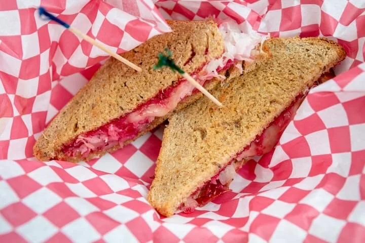 My friends Lisa & Robb made these German Cookies with either pluot jam (from their pluot tree) or poppy seeds and also the most delicious vegetarian Reuben sandwiches. Daisy brought the bounty from her garden and made our set up very picturesque, Yuri and Matt brought the egg salad and Emma made three trays of of charcuterie (veg, traditional and sweet). There was coffee with traditional NY paper cups and Egg Creams which none of us could really get behind.