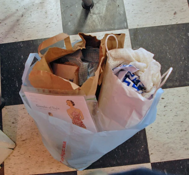 We've just got to make some space in our back room (more on the why in later posts) and it feels so good to finish projects. I encourage you all to take a look at that pile of things you have to do, be it mending, knitting, sewing, or any other kind of left behind craft. And if you find yourself completely uninspired, PURGE!. You can always donate your supplies to places like Scrap in SF, The East Bay Depot for Creative Reuse or even The Sewing Room (Fabric and sewing supplies only please). Additionally, you can re-sell your supplies at The Recrafting Company, which is one of my favorite spots for buying and selling of supplies.