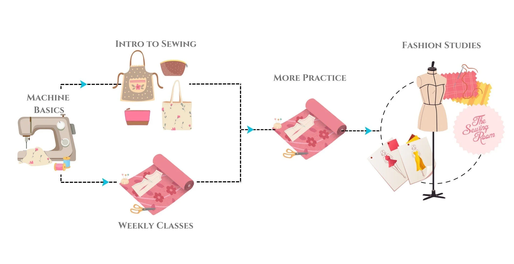 For those interested in pursuing a career in fashion, elevating their existing skills or those interested in the “Art” of fashion, we have a Fashion Studies program that might interest you. Sewing skills are not prerequisite for fashion design and illustration, but will help in understanding the “bones” of clothing and how it gets put together, which in turn, informs design. If you are interested in pattern making then sewing is an imperative tool that you will need to understand the skill. Please don’t hesitate to reach out to Jennifer@TheSewingRoomAlameda.com if you have any questions.