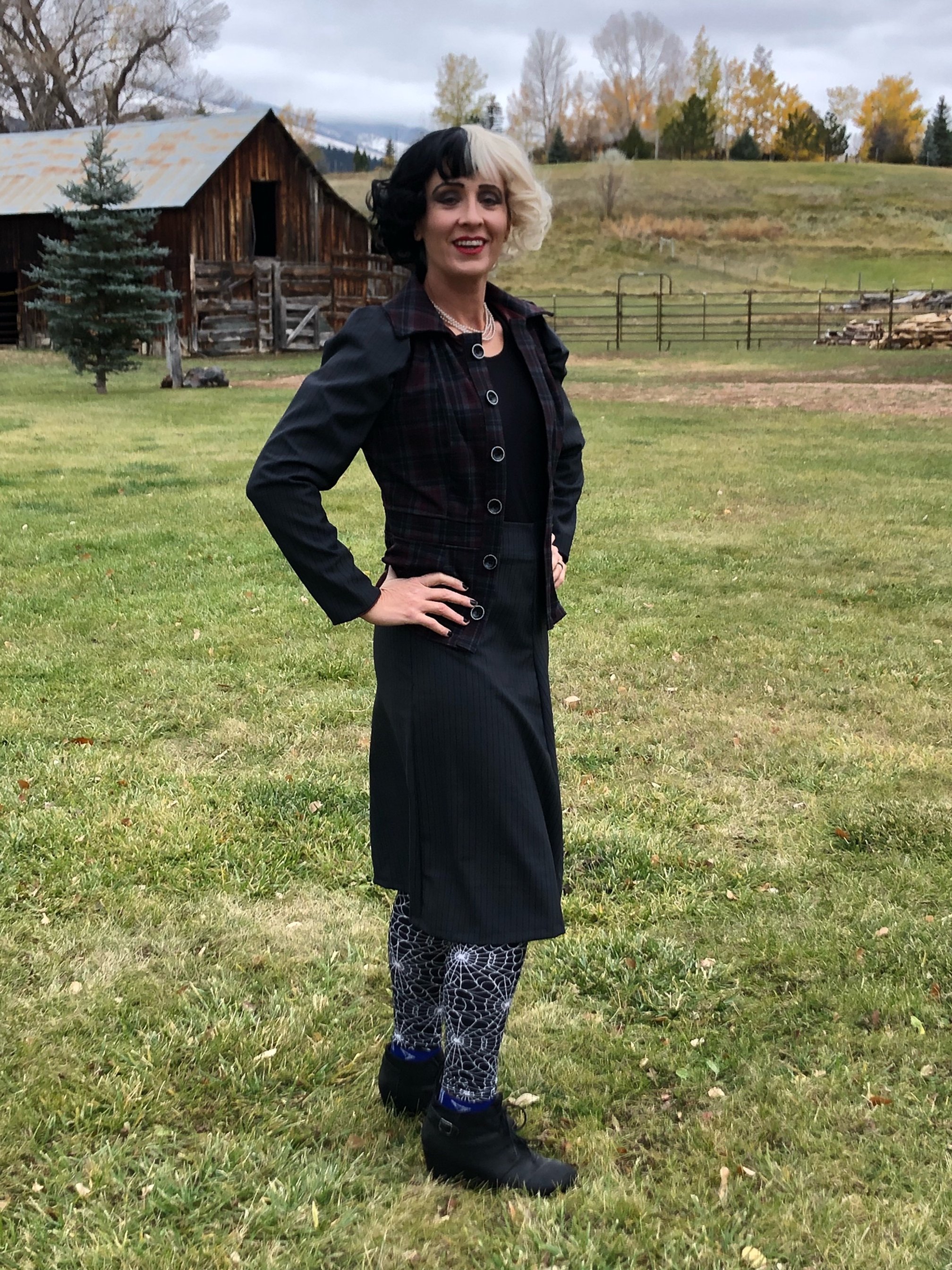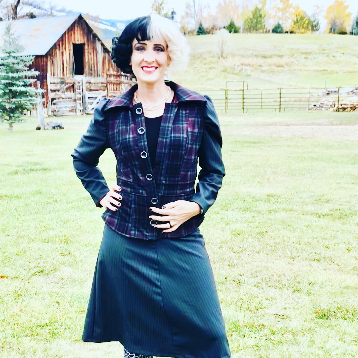We are excited to Introduce you to our Student of The month Lacie Schwend. She's been taking our Online Fashion Sewing and Beginning Pattern Making with Christine in our Online Fashion Studies program. Lacie lives in Wyoming and has a really interesting background. We love her Cruella Costume that she made, using techniques she learned in class with Christine.